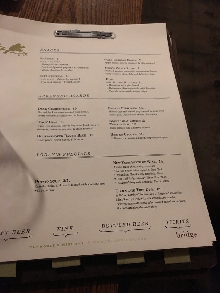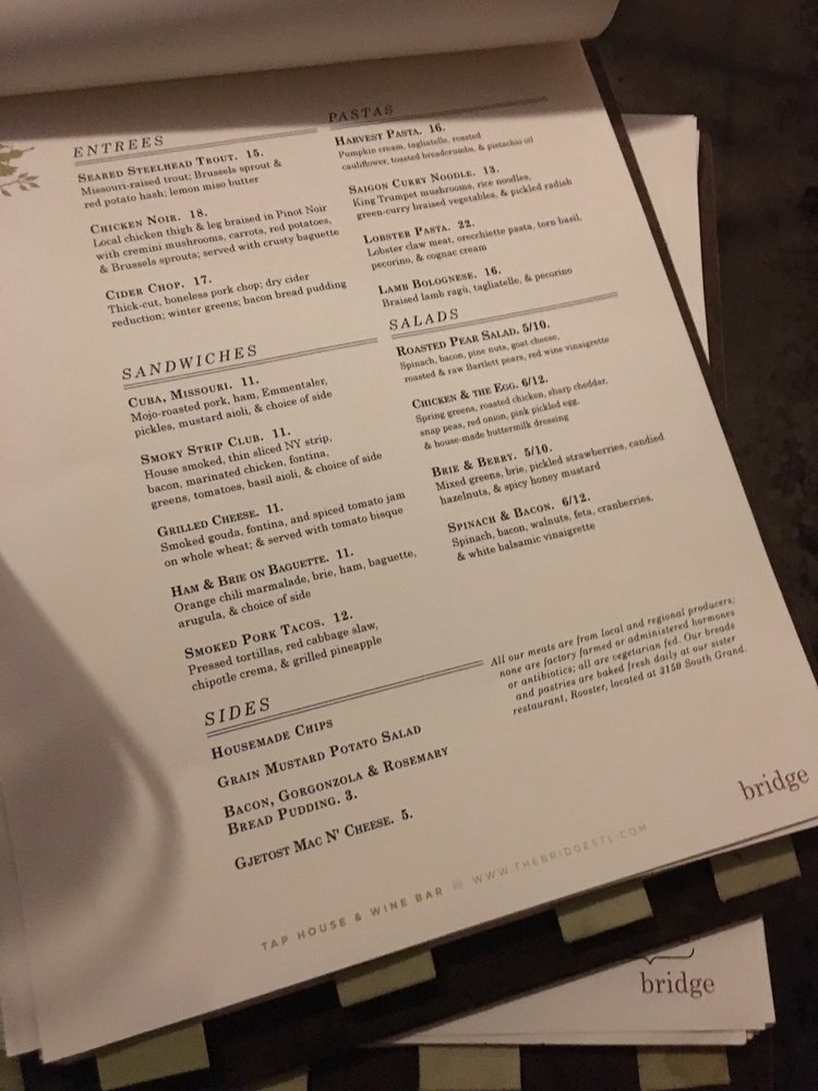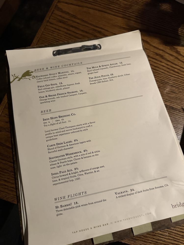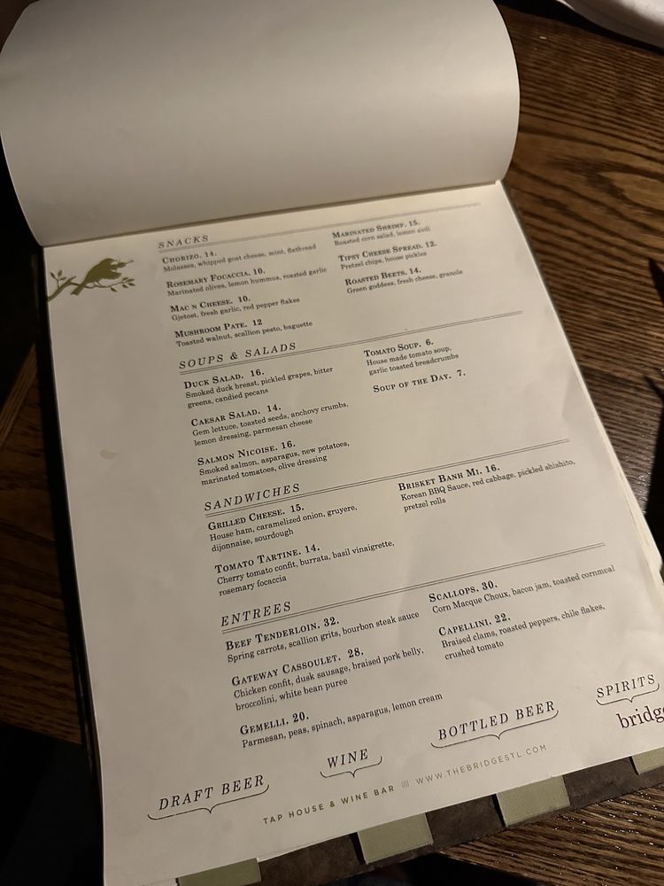 Bridge Tap House and Wine Bar, located in Saint Louis, Missouri, is a trendy spot offering a variety of options for patrons. The menu includes vegan and limited vegetarian options, ensuring all dietary preferences are catered to. Customers rave about the outstanding service and attention to detail from the staff. The charcuterie and entrees are highlighted as must-try dishes, with a focus on accommodating food allergies seamlessly. The ambiance is described as eclectic and romantic, making it an ideal spot for a night out. The extensive cocktail and wine menu, along with the flavorful dishes like scallops and beef tenderloin, ensure a delightful dining experience. With knowledgeable servers and reasonably priced food, Bridge Tap House and Wine Bar comes highly recommended for a memorable evening out.